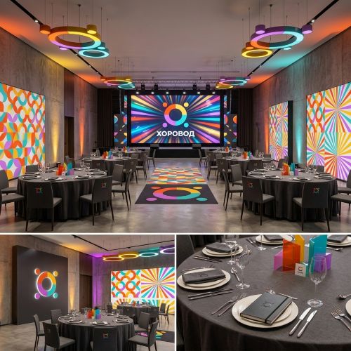 Покажите клиенту готовую картинку до начала монтажа. Декор зала, мудборды и афиши — всё сразу в нужном стиле.